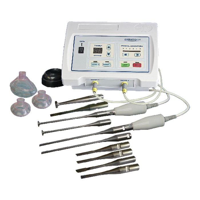 | Комплектация (базовая) | Аппарат, ультразвуковой излучатель (волновод) с держателем, подставка для излучателя, набор насадок (наконечников), паспорт, руководство по эксплуатации. |