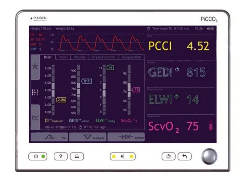 | Совместимость | Использует специальные одноразовые термодилюционные катетеры PiCCO и датчики давления PULSION |