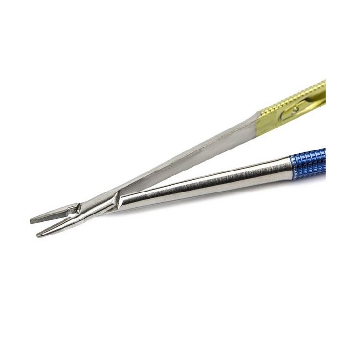 Точная конструкция: специальная конструкция губок обеспечивает надежный захват иглы без повреждения ее острия, а удобная форма рукоятки обеспечивает комфортный захват и контроль над инструментом.