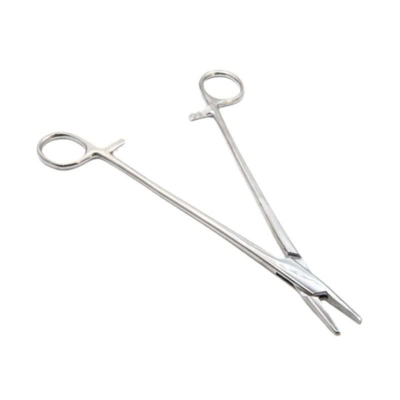 - Надежный захват: Прочные губки с крестообразной насечкой (рашпиль) обеспечивают исключительную фиксацию иглы, предотвращая ее проворачивание и проскальзывание даже при работе с плотными тканями.