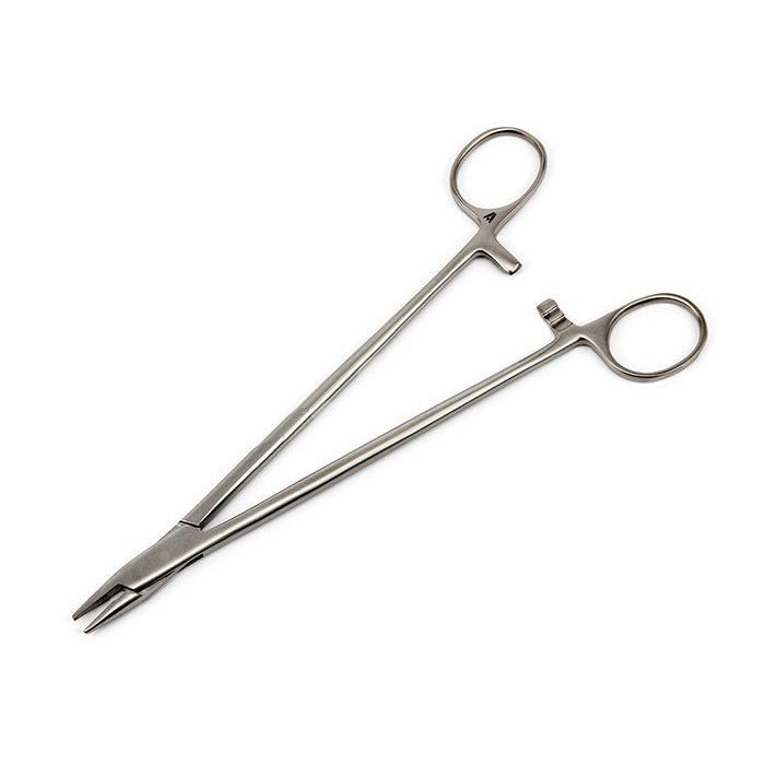 Инструмент предназначен в первую очередь для работы с атравматичными иглами малых размеров (например, 4-0, 5-0, 6-0, 7-0 по этикетке USP), которые используются в сосудистой и пластической хирургии.