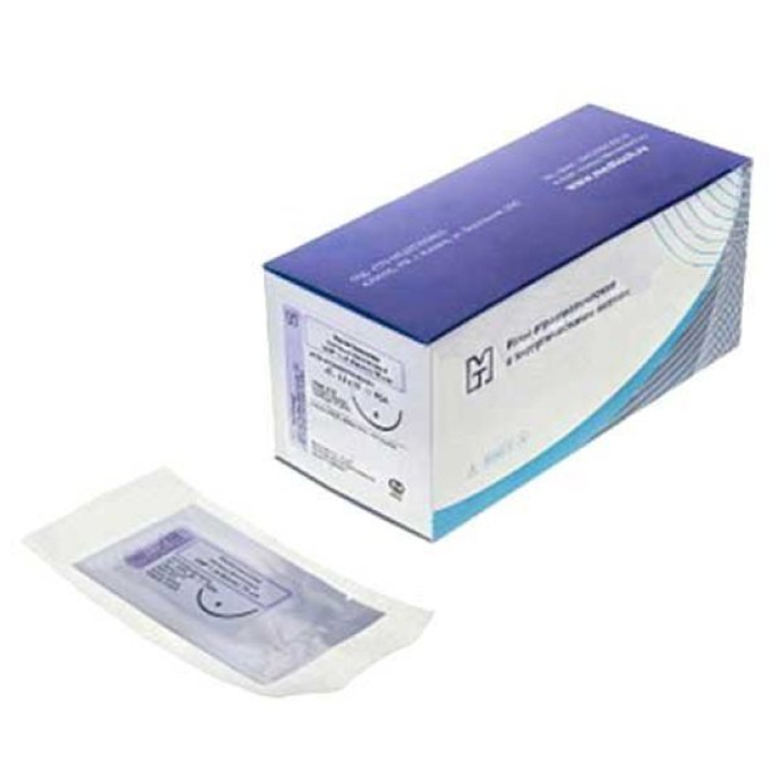 Иглы атравматические с нитями хирургическими рассасывающимися стерильные ПОЛИГЛИКОЛИД-КО-ЛАКТИД MР 4 (USP 1), 75см, плетеный фиолетовый рассасывающийся с покрытием, 20 шт/уп