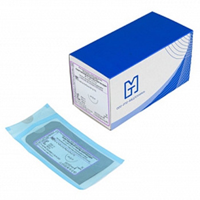 Иглы атравматические с нитями хирургическими рассасывающимися стерильные ПОЛИГЛИКОЛИД-КО-ЛАКТИД ХЛОРГЕКСИДИН MР4 (USP 1), 90см плетеный фиолетовый рассасывающийся с покрытием, 20 шт/уп