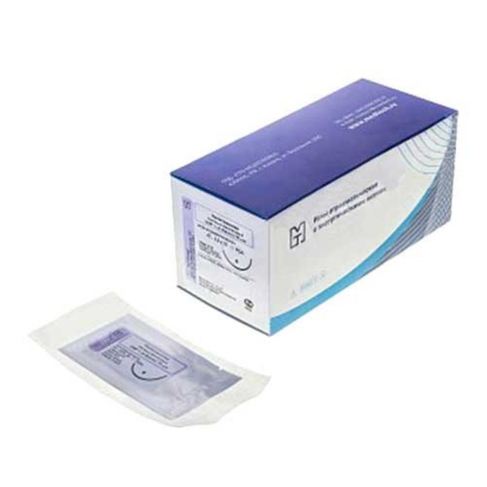 Иглы атравматические с нитями хирургическими рассасывающимися стерильные ПОЛИГЛИКОЛИД-КО-ЛАКТИД MР 1 (USP 5-0), 90см, плетеный фиолетовый рассасывающийся с покрытием, 20 шт/уп
