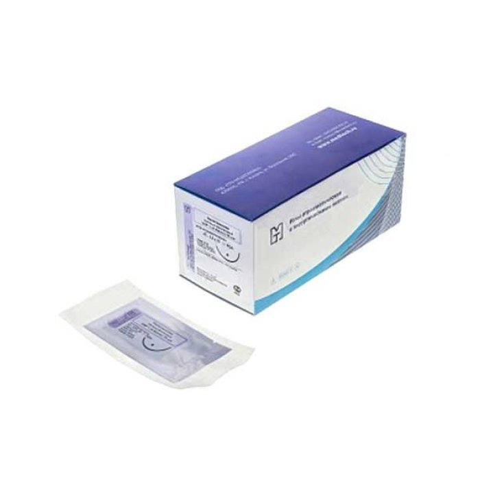 Иглы атравматические с нитями хирургическими рассасывающимися стерильные ПОЛИГЛИКОЛИД-КО-ЛАКТИД MР 3,5 (USP 0), 90см, плетеный фиолетовый рассасывающийся с покрытием 4C-0,9x40-(0)-PGLA-(2-90) 20 шт./уп.