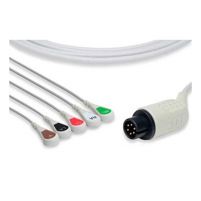 Количество жил определяет количество отведений ЭКГ, которые можно снять. 5-жильный кабель позволяет проводить мониторинг в стандартных отведениях (I, II, III) и часто используется для базового наблюдения за ритмом в неотложных ситуациях и палатах интенсивной терапии.