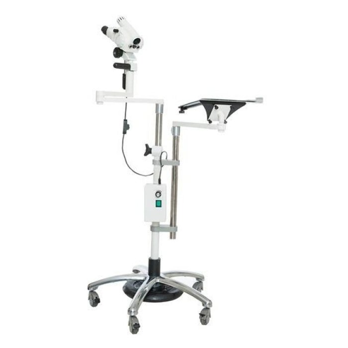 - Эргономика и надежность: Напольная стойка с тяжелой устойчивой базой и системой противовесов позволяет плавно и точно позиционировать головку кольпоскопа в любой рабочей позиции. Все механизмы сбалансированы для комфортной работы без лишних усилий.