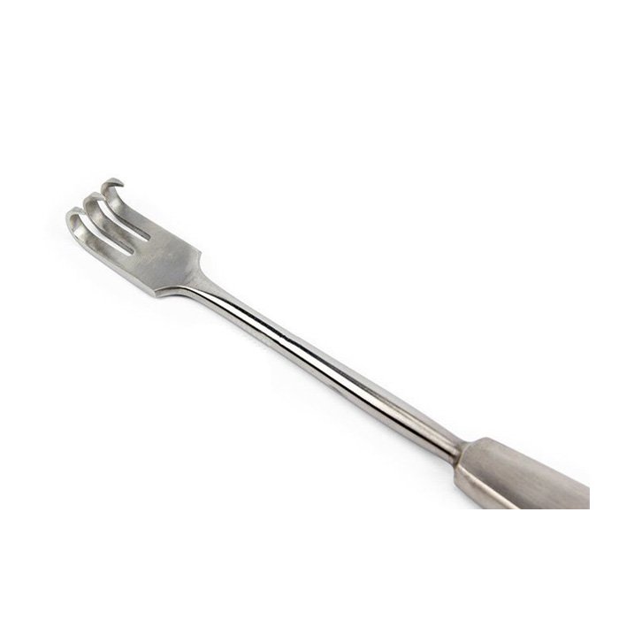 Профессиональный хирургический инструмент, предназначенный для надежной фиксации и отведения тканей во время оперативных вмешательств. Изготовлен из высококачественной нержавеющей стали, что гарантирует долговечность, коррозионную стойкость и возможность многократной стерилизации. Трехзубая конструкция с острыми кончиками обеспечивает минимальную травматичность и максимальный контроль над операционным полем.