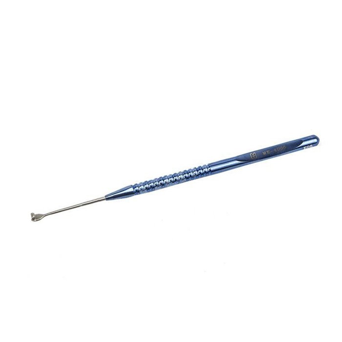 Крючок используется как вспомогательный инструмент в микрохирургии. Его тонкий, закругленный конец позволяет безопасно работать с чувствительными структурами, минимизируя риск повреждений.
