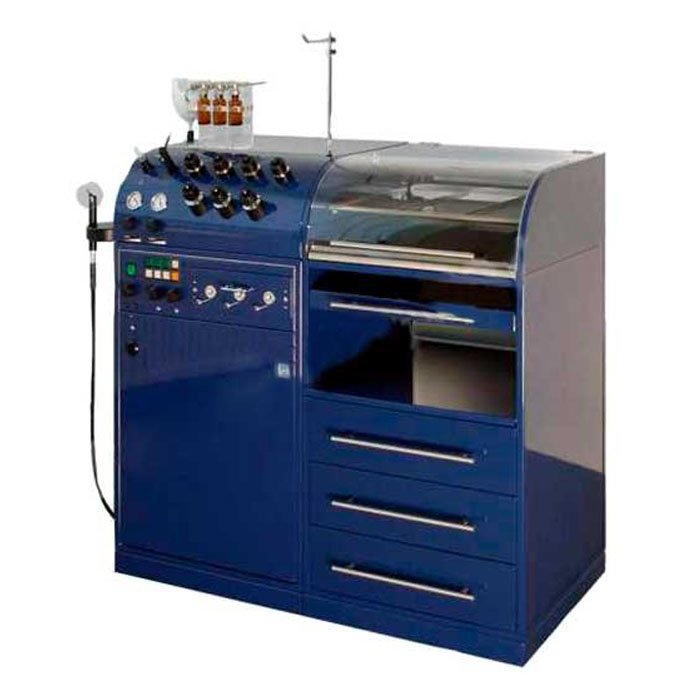 - Стойка врача (закругленная): В ней интегрированы источники света, вакуумный отсос, компрессор и блок управления.
