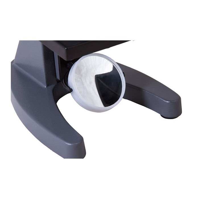 Оптика микроскопа обеспечивает четкое и контрастное изображение. Вращающаяся револьверная головка с тремя ахроматическими объективами позволяет быстро менять увеличение. Встроенный диск диафрагмы под предметным столиком помогает регулировать освещенность и контрастность препарата, улучшая качество картинки. Нижняя подсветка на светодиодах дает равномерный холодный свет, который не нагревает препарат и экономично расходует энергию от батареек или сетевого адаптера.