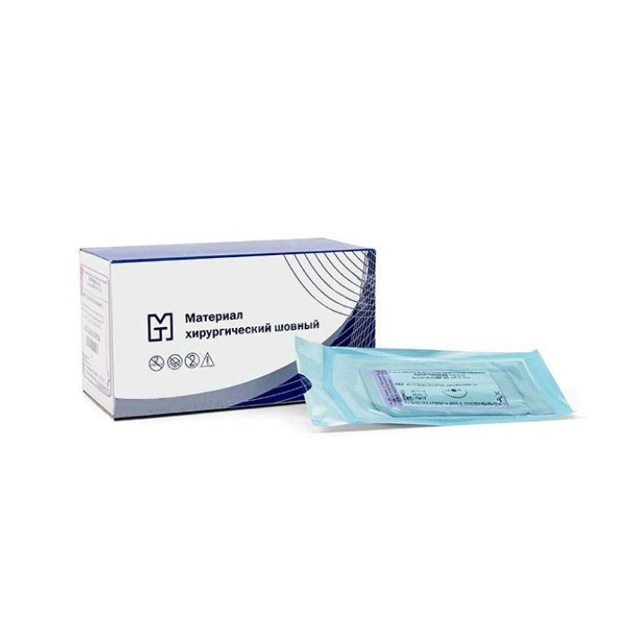 OLD_Иглы атравматические с нитями хирургическими рассасывающимися стерильные ПОЛИГЛИКОЛИД MР 1 (USP 5-0), 75см, 15 мм, плетеный фиолетовый рассасывающийся с покрытием, 20 шт/уп