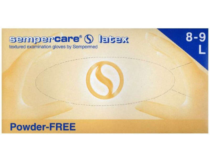 Перчатки медицинские смотровые нестерильные латексные неопудренные двухкратного хлорирования текстурированные Sempercare (S)