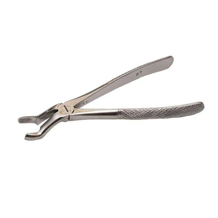 Модель №67 имеет специфический изгиб и форму щечек, рассчитанные именно на третий моляр, который часто имеет неправильное положение или ретинирован. Это отличает их от щипцов для первых и вторых верхних моляров (например, №53).