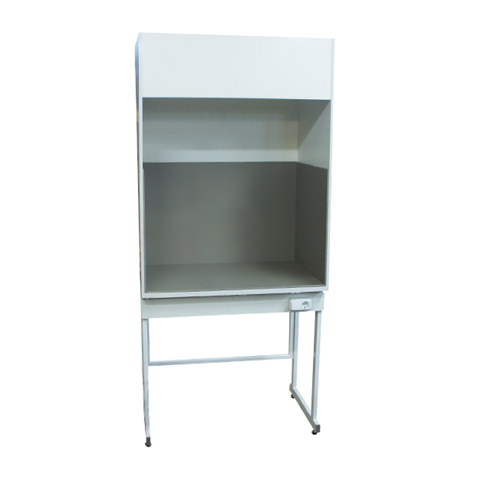 Шкаф выполнен в классическом корпусном исполнении. Рабочая зона представляет собой камеру, закрытую с трех сторон и сверху. Фронтальная часть оборудована подъемно-опускным смотровым стеклом (сайдингом), которое позволяет регулировать доступ в рабочую зону и скорость воздушного потока в проеме. Для подключения к системе вентиляции здания шкаф имеет стандартный фланец или переходник в верхней части.