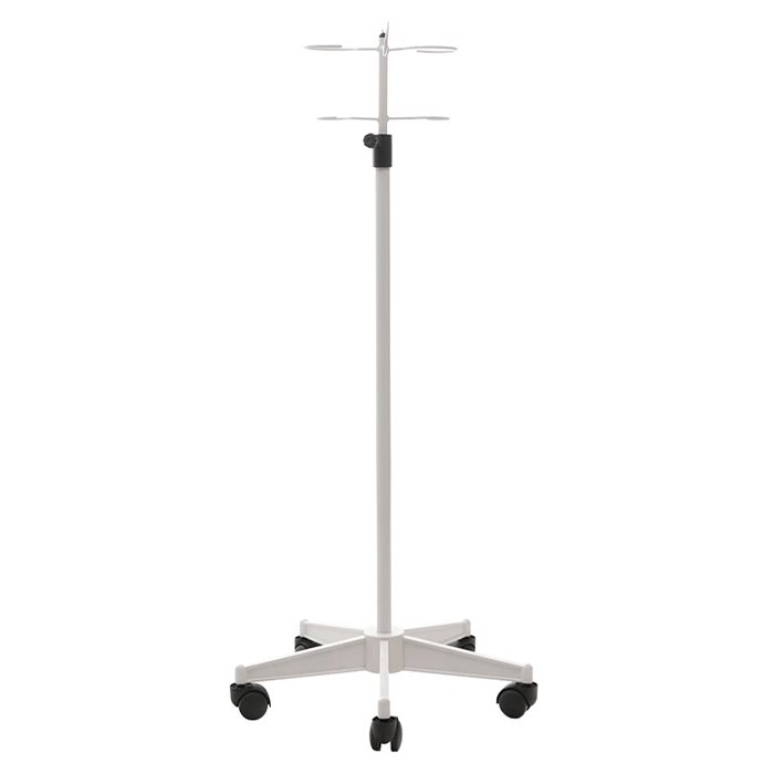 - Простота и скорость регулировки: Телескопическая центральная штанга легко фиксируется на нужной высоте с помощью надежного винтового зажима. Это позволяет быстро адаптировать штатив под рост пациента, кровать или кресло.