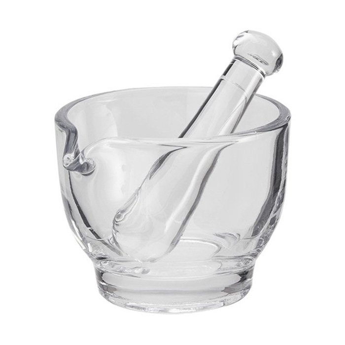 Стеклянная ступка — это выбор для работы с чистыми химическими реактивами, приготовления лекарственных форм в аптеке, создания косметических масок и скрабов, где важна абсолютная гигиена и легкость очистки. Ее гладкая поверхность не впитывает запахи и пигменты, гарантируя, что результат каждой новой процедуры не будет искажен предыдущей.