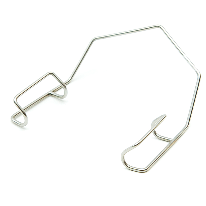 | Особенности конструкции | Два крючка (для верхнего и нижнего века), соединенные регулируемым винтовым механизмом с фиксатором. Темпоральное (боковое) расположение механизма. |