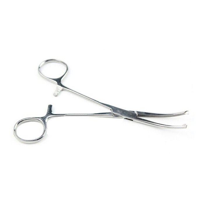 Это означает, что инструмент изогнут вдоль своей рабочей плоскости. Такая форма, в отличие от прямого зажима, позволяет «обходить» анатомические структуры, улучшая обзор и доступ к сосуду, расположенному в глубине раны.