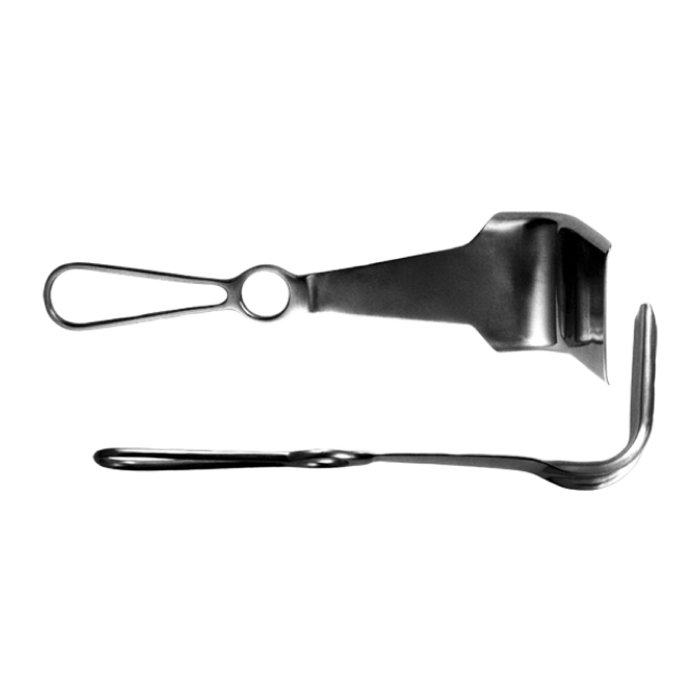 Зеркало Дуайена отличается от других моделей своей конструкцией, которая включает в себя две створки, соединенные шарнирным механизмом. Управление осуществляется с помощью удобных рукояток, оснащенных замковым фиксатором. Это позволяет врачу: